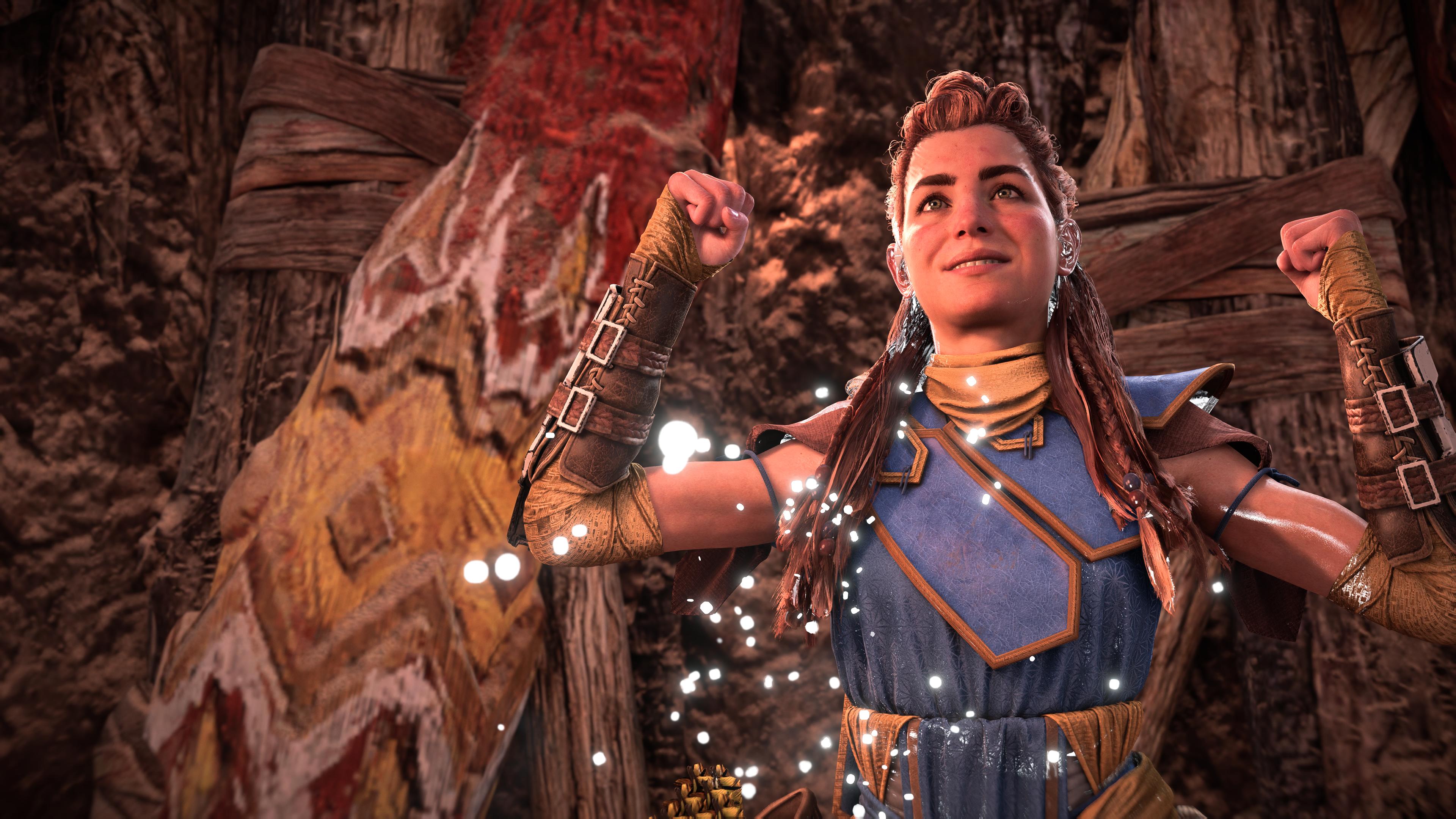 Sin lugar a dudas, Aloy es el plato fuerte de Horizon; y no todos los juegos pueden presumir que de su personaje principal, por muy principal que sea, resulte lo más atractivo del título. Esta guerrera conquistó no solo Meridian, sino también los corazones de millones de jugadores con su personalidad, pericia, sacrificio y determinación mientras rompía muchísimos estándares y clichés de personajes previamente vistos en otros títulos AAA. Pero aquí juega a su favor (o en su contra, dependiendo del punto de vista), que Guerrilla ha sabido mezclar lo mejor de personajes femeninos tan icónicos como Lara Croft, Ellie, Samus Aran, Jade, Bayonetta, etc. para lograr una combinación explosiva y muy acertada.