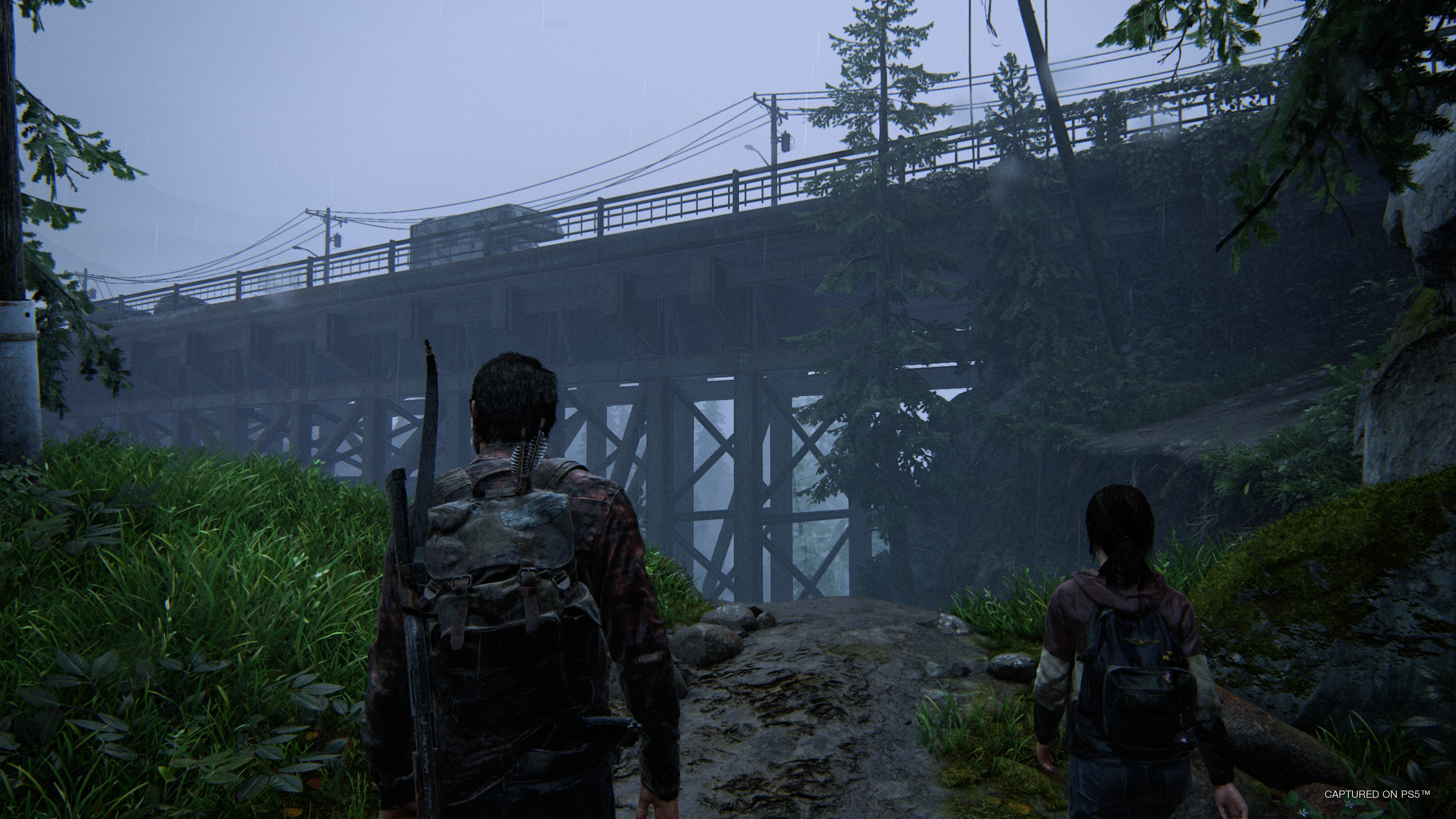 El mundo de The Last of Us: Parte 1 es el que se lleva el mejor de los reconocimientos. Aunque todo «sigue» donde estaba en el original, se aprecia perfectamente cómo los escenarios del juego están más vivos, tremendamente más cuidados y con una atmósfera más curtida, más grande. Donde antes había solo un sofá en la calle, ahora hay unos libros, un carrito de la compra junto al mueble y otros elementos que nos indican que podría ser donde vive o vivía un indigente. Mención aparte, es impresionante ver llover en el juego: desde las visuales hasta el sonido es embriagador, tanto que te mete de lleno en el juego hasta alcanzar unas cotas de realismo en el juego que te ponen los vellos de punta.; podría quedarme parado durante largos minutos para disfrutar simple y llanamente de la lluvia/tormenta en el juego. Todo el sistema de niveles se siente perfeccionado hasta donde se es posible, resultando en un producto final que, sorprendentemente, está a años luz de su versión original aunque esta haya envejecido tan bien con el paso de los años. Impresiona ser testigo de ambas versiones y lo mucho que ha evolucionado Naughty Dog a nivel gráfico en menos de diez años.