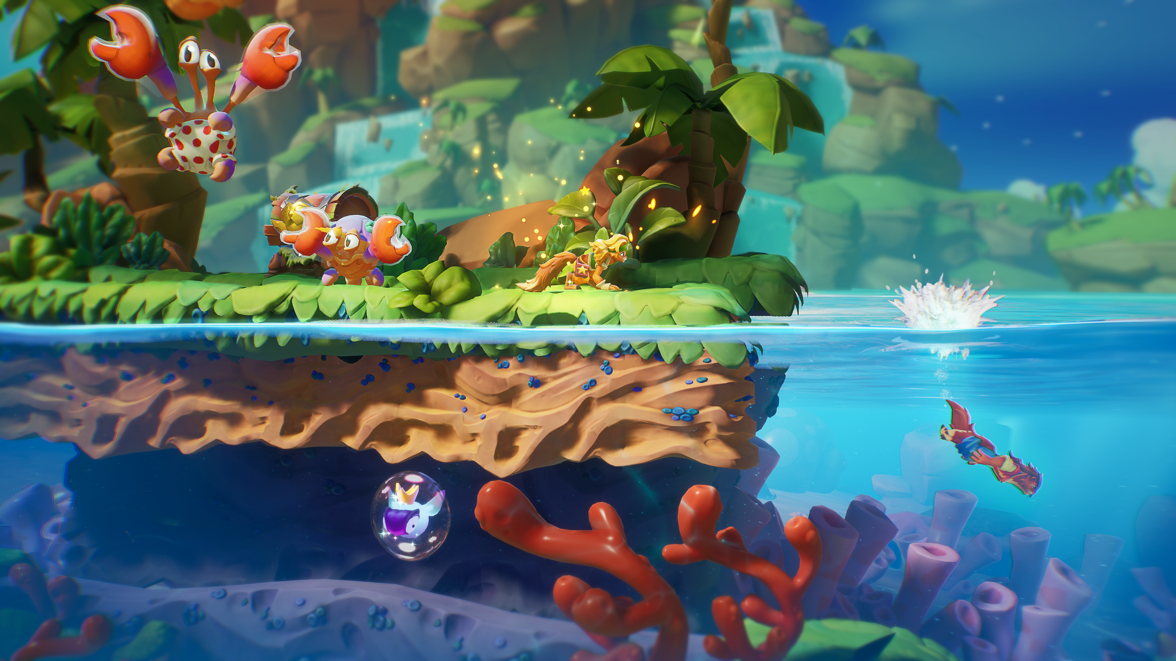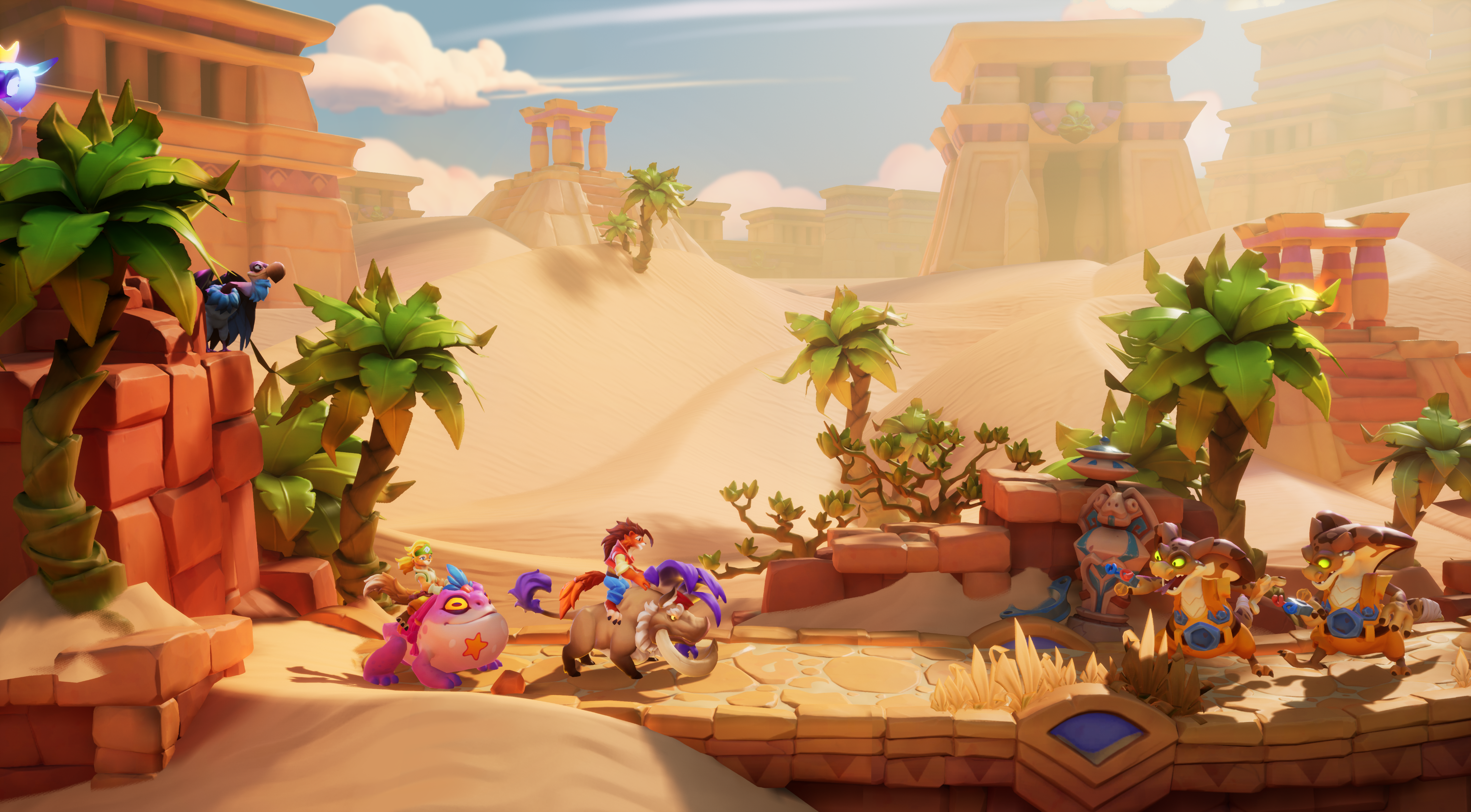 La estética visual también es un reflejo de sus influencias; muchos escenarios evocan a la nostalgia de otros juegos, tanto en sus ambientes exóticos como en el enfoque de plataformas por el que se desplaza el personaje. Sin embargo, el juego no se limita a imitar u homenajear dichas licencias, sino que añade su propio estilo a los diseños de personajes y mundos. La dirección artística logra aportar un toque único, con un uso efectivo de colores vibrantes y una gran variedad de niveles que van desde selvas hasta templos antiguos, ofreciendo al jugador una experiencia visual atractiva y variada.